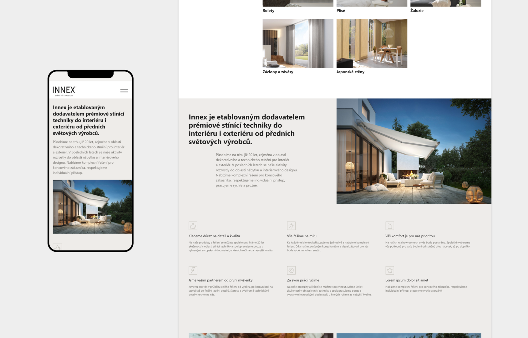 Pro Innex jsme vytvořili prezentační web se stínící technikou top kvality.