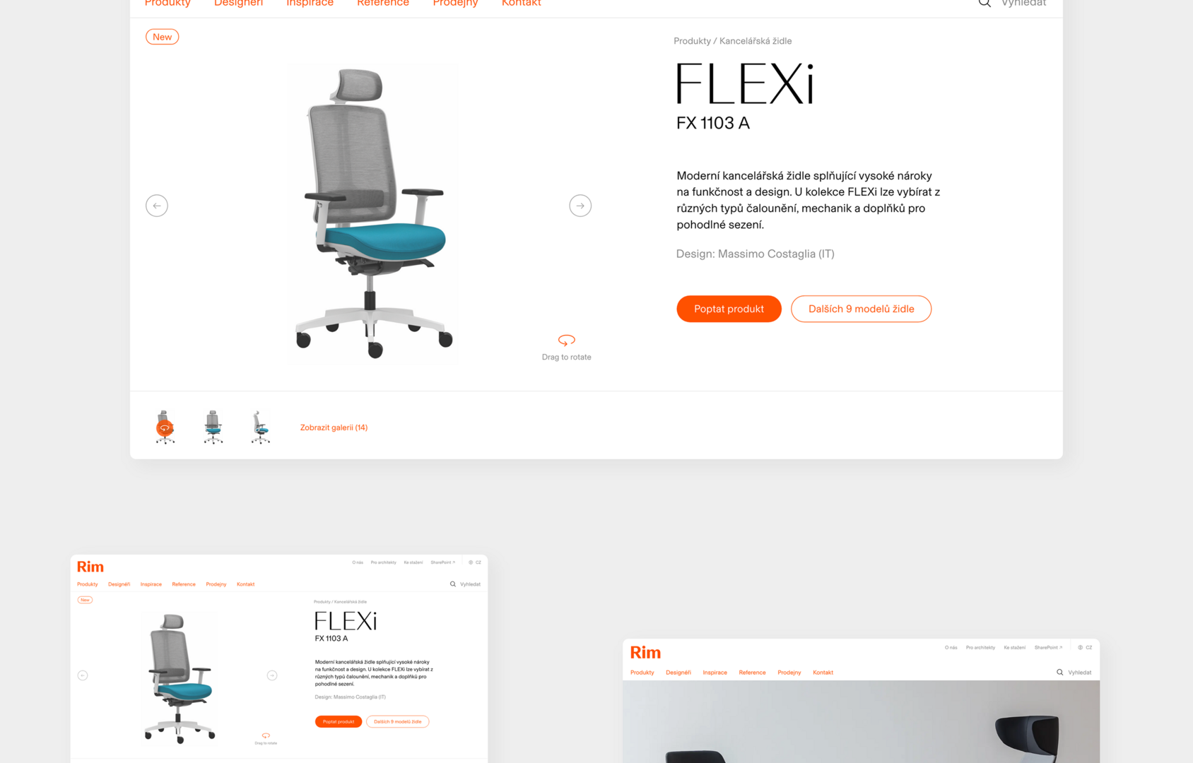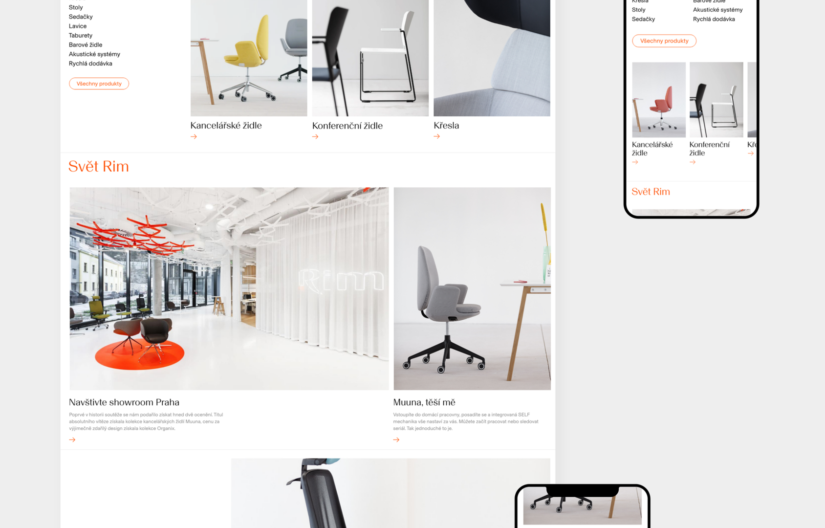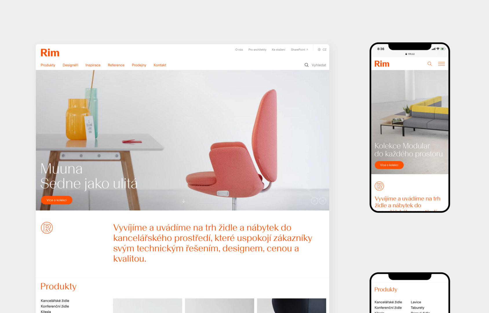 Bylo pro nás radostí navázat na práci Marka Nedelky a Filipa Dědice designem a vývojem webu pro zlínskou firmu Rim, jejíž získaná ocenění svědčí o tom, že jsou vyjímeční ve svém oboru. Důraz na fotografie je pro designové produkty základ a sázka na jistotu. Nálada fotografií dodává webu tu správnou atmosféru a naláká zvědavé zákazníky do skvěle vybavených showroomů v Otrokovicích a v Praze.