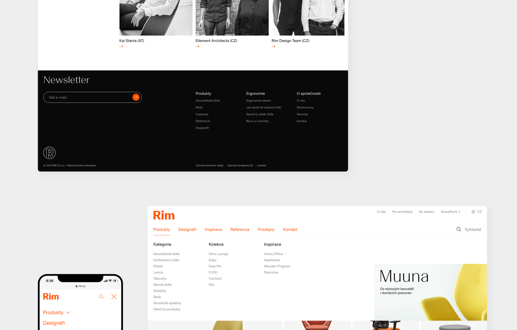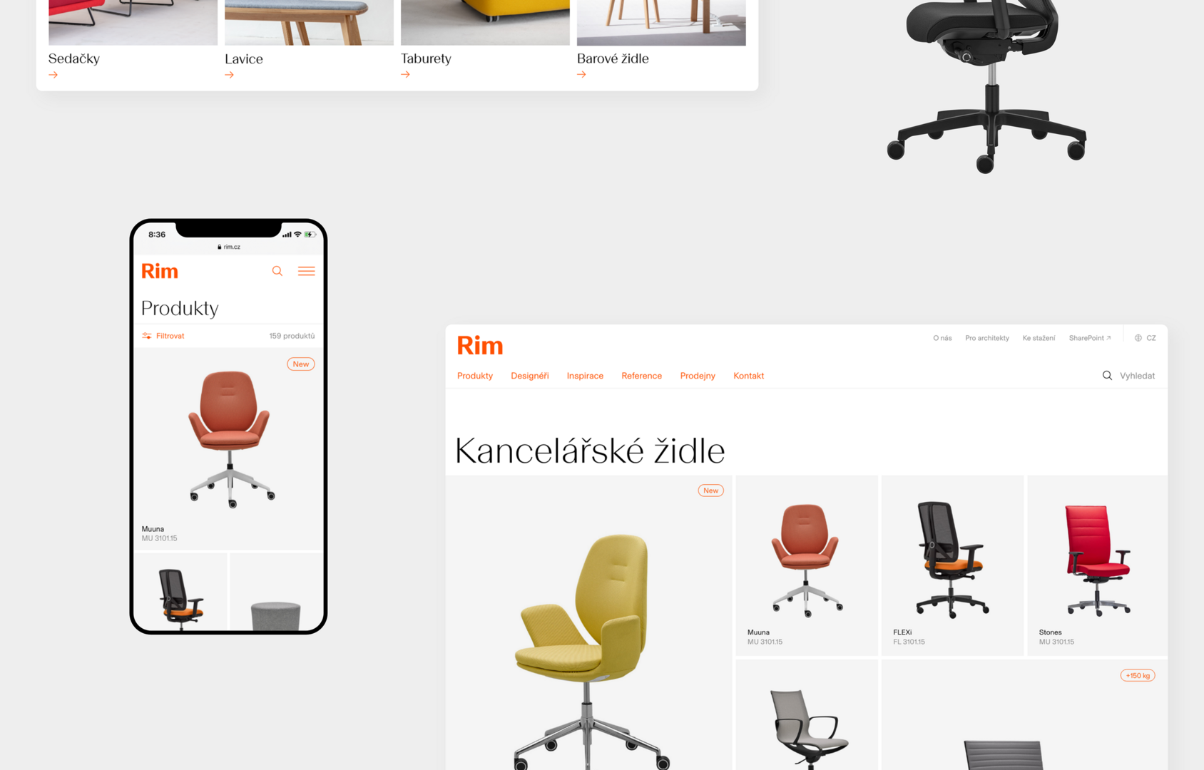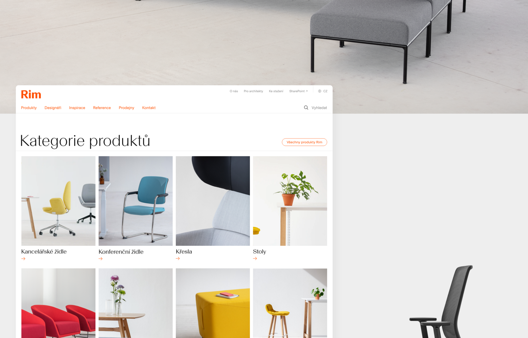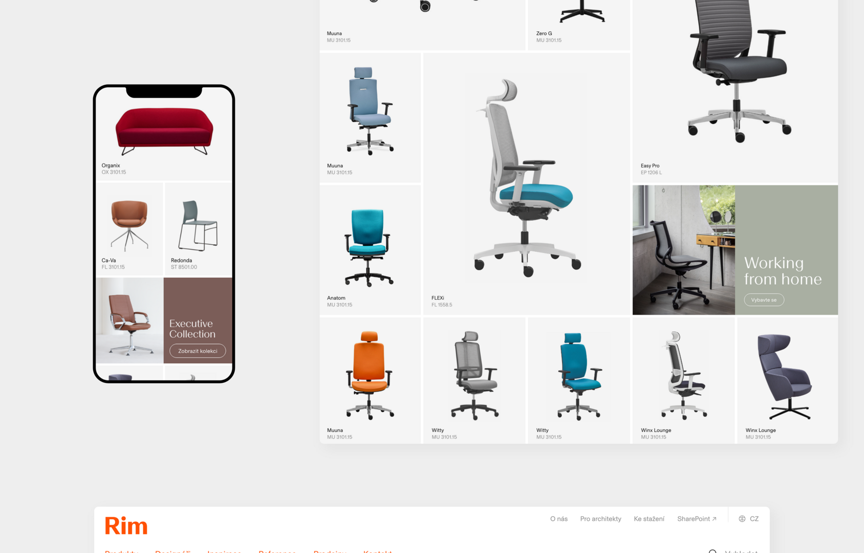 Bylo pro nás radostí navázat na práci Marka Nedelky a Filipa Dědice designem a vývojem webu pro zlínskou firmu Rim, jejíž získaná ocenění svědčí o tom, že jsou vyjímeční ve svém oboru. Důraz na fotografie je pro designové produkty základ a sázka na jistotu. Nálada fotografií dodává webu tu správnou atmosféru a naláká zvědavé zákazníky do skvěle vybavených showroomů v Otrokovicích a v Praze.